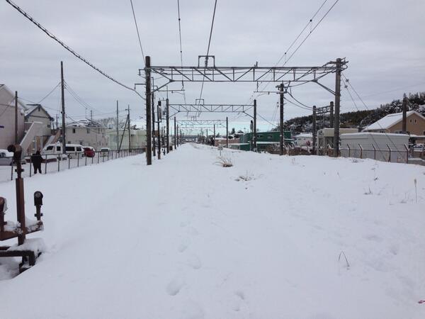 鐵路被雪埋住 以至於停止通行 (下圖)
